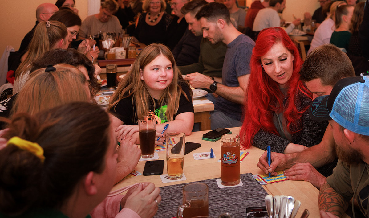 Schon um kurz nach 18 Uhr waren die Räume in der oberen Etage im Brauhaus Gummersbach voller Menschen, alle Plätze belegt. Viele hatten im Vorfeld Tische reserviert, andere wiederum entschieden sich spontan. Nicht für alle Rätselfans hatte es gereicht. „Mit so einer Resonanz habe ich nicht gerechnet. Es tut mir so leid, dass Leute wieder gegangen sind“, so Renate Wigger.