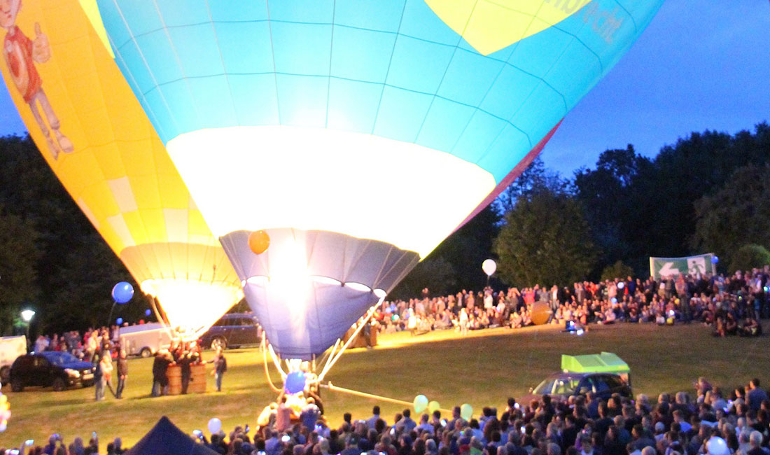 Ab 20 Uhr spielt traditionsgemäß die Band „Hot Stuff“. Die Partyband aus dem Oberbergischen liefert, wie in den vergangenen Jahren, mit aktuellen Chartbreakern, Schlagern, kölschen Hits und Klassikern aus 40 Jahren Rock- und Popgeschichte den Soundtrack zum Feiern und Tanzen. Während „Hot Stuff“ zum Tanzen einlädt, bereiten sich die Ballonfahrer mit ihren Teams auf das große Glühen ihrer Ballons vor. Gegen 21:30 Uhr werden die riesigen Ballons mit einer Choreographie zu bekannten Musikstücken leuchten. Für das leibliche Wohl ist gesorgt. Der Eintritt ist wie immer frei.