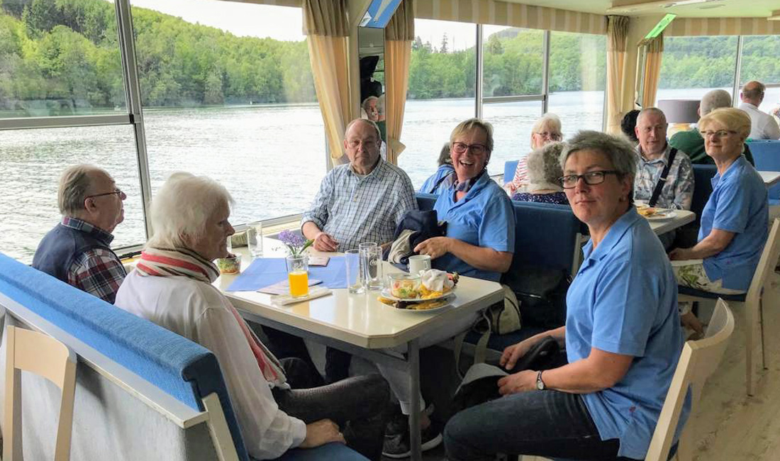 Dank großzügiger Spenden konnte die Diakoniestation Bergneustadt im Rahmen ihrer Gruppenbetreuung für Senioren mit Demenzerkrankung erstmals eine kostenfreie Seniorenfahrt ermöglichen. Mit dem Bus ging es für die Gäste der Tagesbetreuung Memory sowie die sechs Mitarbeiter der Diakoniestation an den Bigesee, wo mit einem Ausflugsschiff eine Rundfahrt unternommen wurde. Anschließend wartete noch ein Uferspaziergang auf die Patienten. „Die Mitarbeitenden der Diakoniestation haben sich sehr für diesen Ausflug eingesetzt“, sagte die stellvertretende Pflegedienstleitung Elisabeth Wiens, die den Ausflug begleitete: „Es hat alles hervorragend geklappt und die Pflegebedürftigen hatten ihren Spaß.“ Um solche Tagesausflüge künftig häufiger anbieten zu können, sucht Geschäftsführer Sebastian Wirth nach möglichen Finanzierungsarten.