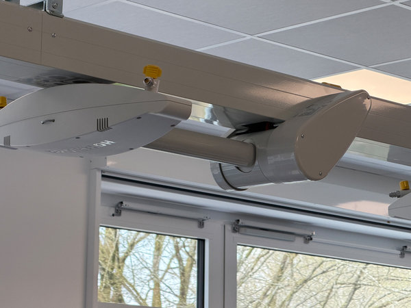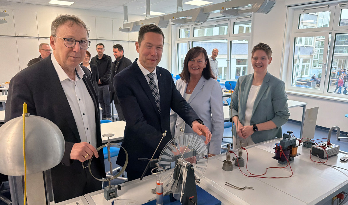 „Jetzt findet der Biologieunterricht nicht mehr in meinem Musikraum statt“, verspürte Harrock durchaus Anerkennung für das Improvisationstalent ihrer Kollegen, freute sich aber umso mehr, dass diese jetzt auf modernste Technik zugreifen können. Neben digitalen Tafeln ist unter der Raumdecke technisches Equipment installiert, das genau wie die darunter stehenden Tische flexibel angeordnet werden kann. Zudem gibt es Verdunklungsmöglichkeiten.