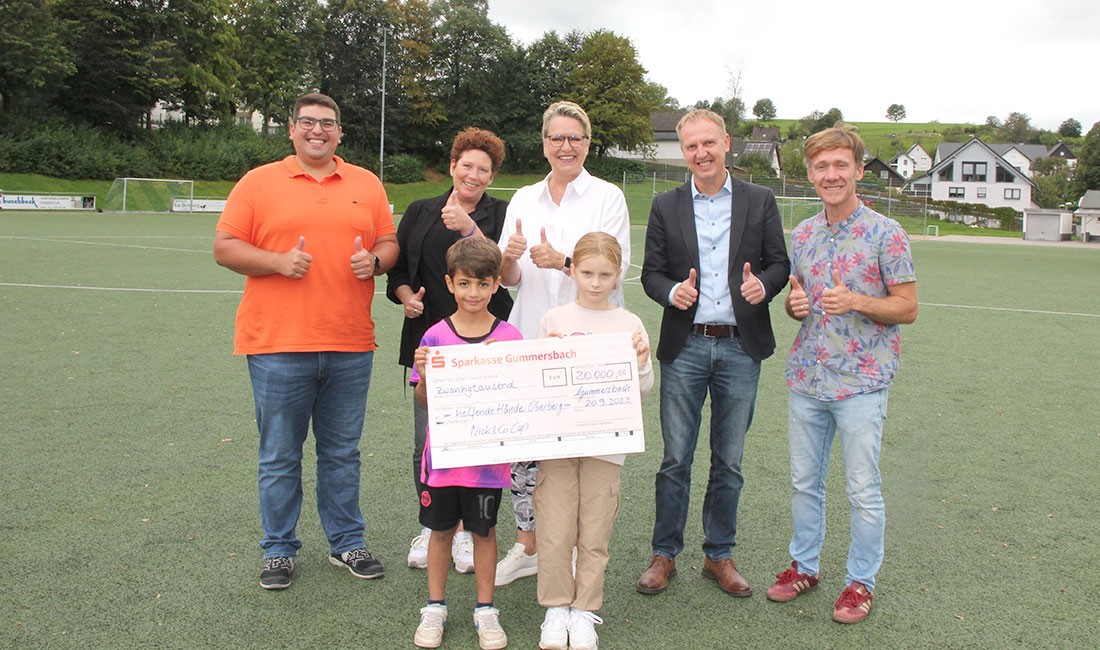 Der „Nick und Co.-Cup“ in Bernberg ist längst nicht mehr wegzudenken aus dem Fußballkalender – und das nicht nur aus dem oberbergischen. Sowohl national bekannte Klubs als auch international klangvolle Namen wie FC Liverpool oder Juventus Turin kennen inzwischen den Weg zum Sportplatz der SpVg. Dümmlinghausen-Bernberg, wo sich im Sommer über mehrere Tage Tausende Besucher einfinden. Alle eint zum einen der sportliche Gedanke, zum anderen aber der karitative Zweck der Veranstaltung, hinter dem neben der Spielvereinigung „Helfende Hände Oberberg“ steht, ein Projekt der Waldbröler Ursula-Barth-Stiftung. Auch in diesem achten Jahr der Veranstaltung kam wieder ein hoher Erlös zusammen. Heute ist ein symbolischer Scheck über 20.000 Euro an das Projekt übergeben worden. Mit dem Geld wird schwerkranken Kindern und ihren Angehörigen geholfen.