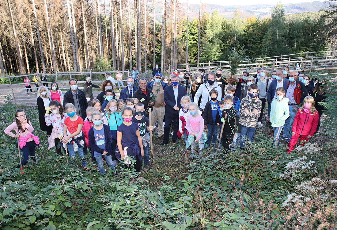Bergneustadt – NABU und Forstbetriebsgemeinschaft klärten über Ausmaß der Schäden auf – Schulkinder und Politiker pflanzten gemeinsam Bäume für die Zukunft.