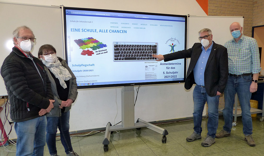 Die Leonardo da Vinci-Schule in Morsbach kann ihren rund 380 Schülern fortan modernste Technik für den digitalen Unterricht anbieten. Fünf interaktive Schultafeln mit Touch-Monitor sind die neueste Errungenschaft. Vier davon wurden über den Digitalpakt der Bundesregierung bewilligt und den fünften im Wert von rund 6.000 Euro hat der Förderverein der Schule finanziert. „Über den Riesen-Monitor und den eingebauten PC können sich beispielsweise Schüler und Lehrkräfte mit ihren Geräten einloggen und die Lerninhalte für die gesamte Klasse großformatig projizieren und bearbeiten“, erläuterte der Didaktische Leiter Michael Dietershagen.