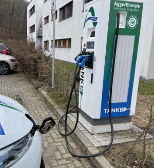 Wer das Auto trotzdem länger dort abstellt, wird zum Falschparker; ein Knöllchen ist dann obligatorisch. Anders als bei den nur einige Meter entfernten Stationen im Forum-Parkhaus - wo das „Tanken“ vorerst kostenlos bleibt - muss an den neuen Ladesäulen bezahlt werden: 39 Cent pro Kilowattstunde für den Standardvorgang und 49 Cent für die schnellere Variante. Kunden der AggerEnergie erhalten jeweils zehn Cent Rabatt. Dafür muss man sich über die App „TankE-Netzwerk“ registrieren und man kann den Ladevorgang dann außerdem per QR-Code starten. Die Abrechnung erfolgt über das beim Versorger hinterlegte Girokonto. Alle anderen Nutzer können mit Kreditkarte bezahlen.