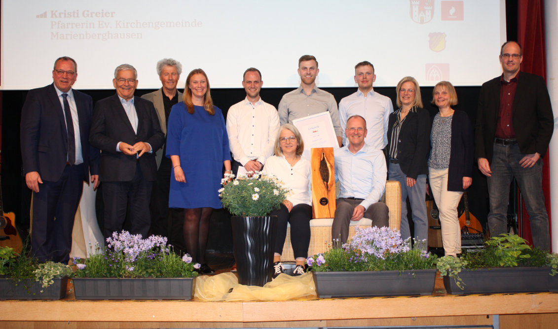 In Vertretung ihres verhinderten TUS-Elsenroth-Vorsitzenden Christoph Goße, der als einer der Bürgerpreis-Empfänger diesmal auf der Bühne Platz genommen hatte, ließ seine Stellvertreterin Sabine Schmidt-Hahne die vielfältigen ehrenamtlichen Tätigkeiten der „Aktivposten“ Revue passieren. Einen Überblick über die freiwilligen Aktivitäten innerhalb des Musikvereins Heddinghausen lieferte gewohnt launig dessen Vorsitzender Arwid Strang. „Ihr habt große Herzen und die Art, wie ihr auf Menschen zu geht, ist ein Segen“, lobte die Pfarrerin der evangelischen Kirchengemeinde Marienberghausen, Kristi Greier, das Engagement der Familie Goße, etwa bei Tannenbaum-Aktion, dem Konfi-Cup, den Lego-Tagen und vielen weiteren Events.