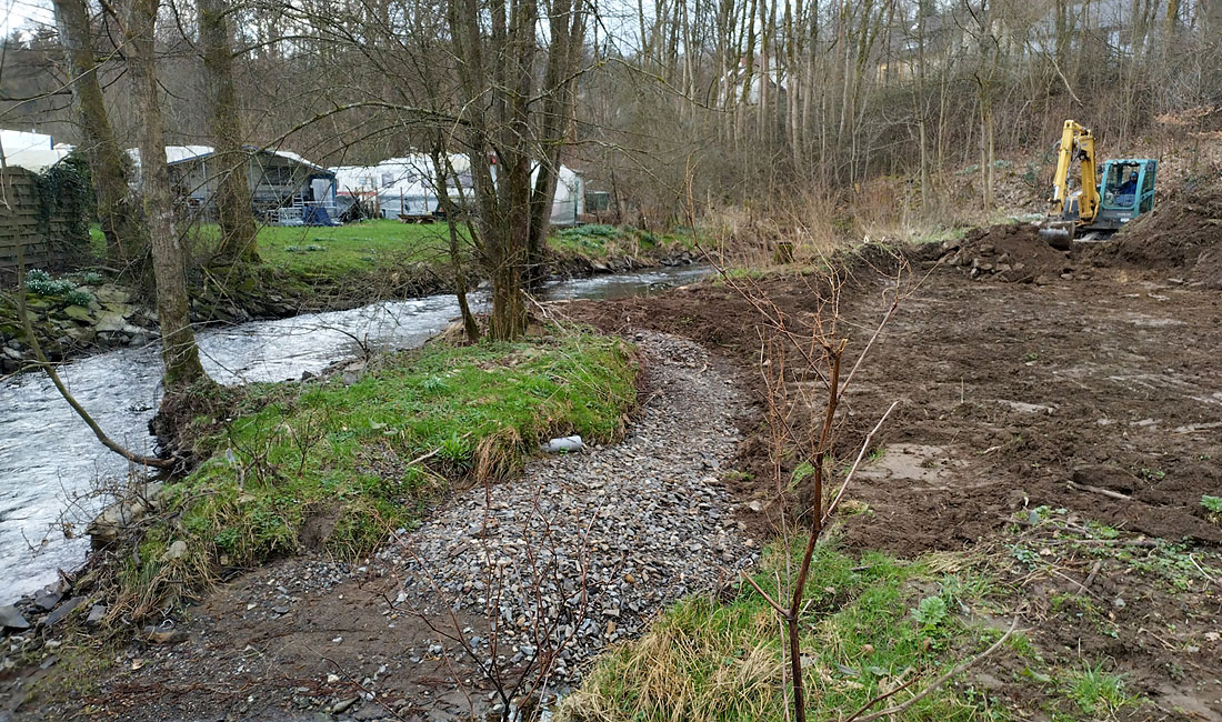 „Künstliche Uferbefestigung entfernen und den Flusslauf natürlicher gestalten“ - so lautet das Motto eines aktuellen Projekts des Wupperverbandes. Realisiert wird das Vorhaben seit Anfang März im Bereich eines früheren Campingplatzes in Wipperfürth-Ohl, das Grundstück wurde vom Eigentümer hierfür zur Verfügung gestellt.