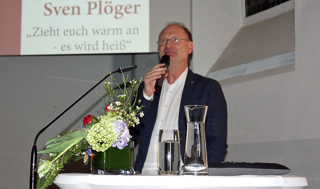 Dass selbst kleine Beiträge wichtige Beiträge zur Schaffung einer "enkelfähigen" Welt seien, müsse gesamtgesellschaftliche Haltung werden. Zur Bildung von Problembewusstsein nachfolgender Generationen forderte er "ein Achtzigstel für die Allgemeinheit", ein freiwilliges soziales oder ökologisches Jahr für Heranwachsende. "Ja, er macht Sorge. Ja, er ist gewaltig, aber wir können den Klimawandel brechen", unterstrich Plöger mit optimistischem Blick in die Zukunft.