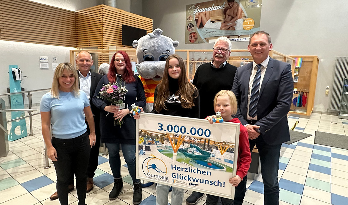 „Ich habe noch nie etwas gewonnen und habe die Nachricht auch erst für einen Scherz gehalten“, sagte die Gummersbacherin gestern. Erst beim zweiten Blick auf ihr Handy verstand sie, dass es sich nicht um eine Werbenachricht dubioser Anbieter halten konnte. „Eigentlich hätten wir die Besuchermarke schon viel früher erreicht“, meinte Harald Gabriel von der GMF, die das Bad gemeinsam mit den Stadtwerken seit jeher betreibt. Corona aber habe dafür gesorgt, dass die Gästezahlen zwischenzeitlich stark zurückgingen. Ansonsten seien die Zahlen aber durchaus zufriedenstellend: Rund 180.000, anstatt ursprünglich kalkulierter 120.000 Gäste besuchen jährlich im Schnitt das Gumbala.
