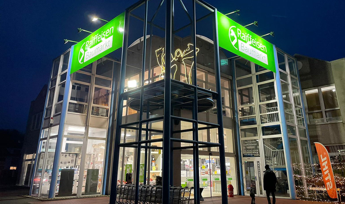 Ehemaliger Profi-Baumarkt erstrahlt in Raiffeisen-Grün