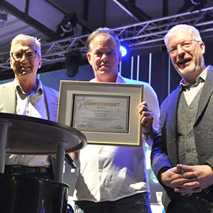 Renè Köhler, Geschäftsführer der Alten Drahtzieherei, vergab an dem Abend auch neue Sternpatenschaften an die Firmen Gebrüder Käufer Befahrtechnik aus Hückeswagen und die Firma Gira aus Radevormwald. Das Unternehmen aus Hückeswagen engagiert sich bereits seit vielen Jahren in der Drahtzieherei und unterstützt bei Beratung und Umsetzung vieler Projekte. Auch viele Materialspenden sind an die Alte Drahtzieherei gegangen. Gira wiederum – Vertreter der Firma konnten bei der Veranstaltung nicht dabei sein - hat der Wipperfürther Tafel im Dezember 10.000 Euro gespendet. „Wir haben schon lange keine neue Sterne mehr vergeben können und sind froh, dass wir heute direkt zwei neue Sternpaten vorstellen konnten“, sagte Herbert Willms, Vorsitzender der Bürgerstiftung. Mit den Sternpatenschaften werden Großspender ausgezeichnet. Die Sterne werden im Foyer der Drahtzieherei angelegt und gesellen sich zu jenen, die bereits dort eingelassen sind.
