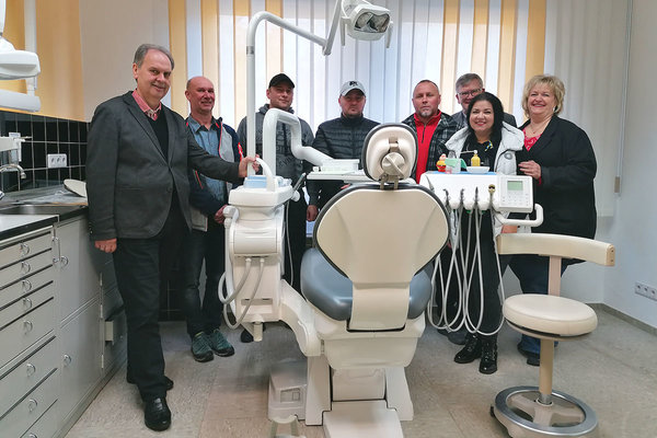 „Ich weiß, von wem die Spende kommt, und ich weiß, an wen sie geht“, sagte Butulay, die nicht zuletzt als Bindeglied fungiert. Die Praxisausstattung werde nicht in private Hände gelangen, sondern in einer staatlich finanzierten Poliklinik zum Einsatz kommen. „Dank der Spende kann in Zhytomyr eine kleine Zahnklinik aufgebaut werden“, sagte Rothausen. Behandelt werden dort nicht nur Witwen, Waisen und andere bedürftige Menschen, sondern auch Soldaten, Kombattanten, Kriegsverletzte. So könnten vor Ort beispielsweise sehr schnell einfache Kunststoffprothesen hergestellt werden.