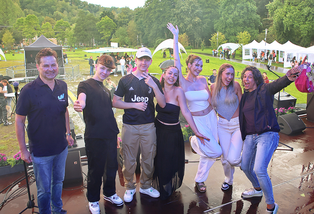 Parallel dazu gab es auf dem gesamten Areal verteilte Mitmach-Angebote wie Torwandschießen (FV Wiehl), Basketballmatch (TuS Wiehl), Minigolf, Skate Jam im Wheelpark und die Slackline zum Ausprobieren. An den Ständen von DLRG, DRK und Jugendfeuerwehr informierten deren Nachwuchskräfte über ihr freiwilliges ehrenamtliches Engagement. Kein Wunder, dass den Park schon am Nachmittag hunderte junge Leute bevölkerten und vor der Bühne jede Menge Fans den Auftritt von „Flyyy“ bejubelten. Für die sieben Youngster aus der Musikschule der Homburgischen Gemeinden war es der erste Gig vor öffentlichem Publikum, entsprechend groß war das Lampenfieber.