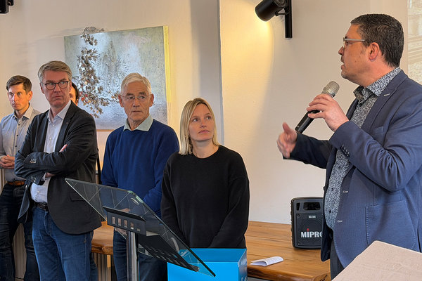 „Auf dem Platz können Empfänge nach Trauungen oder Kulturveranstaltungen stattfinden“, prognostizierte der Bürgermeister. Genau definiert wurden die Nutzungsmöglichkeiten allerdings noch nicht. „Das werden uns die Menschen schon zeigen“, sagte der Gemeindechef vor zahlreichen Gästen während seiner Begrüßungsrede im Kulturbahnhof. Er lobte außerdem die aus seiner Sicht gut funktionierende Zusammenarbeit der „Zahnräder“, u. a. bestehend aus Planungsbüro Donner & Marenbach, den AGL-Landschaftsarchitekten, Stadtplaner Jens Ebener und vonseiten der Gemeinde Florian Stausberg.