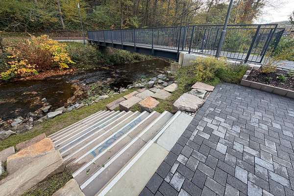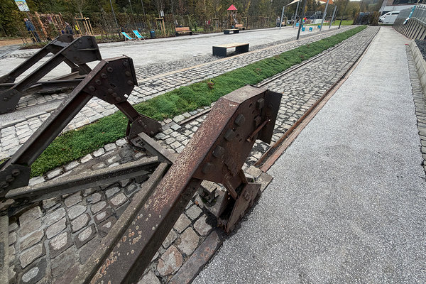 Nagelneu sind auch die Spielgeräte, an denen sich die Jüngsten austobten. Daran angrenzend weist die neue Brücke Radfahrern und Fußgängern den Weg über die Wisser, um nicht an der viel befahrenen Ortsdurchfahrt, sondern naturnah das neue Areal vom Zentrum aus erreichen zu können. Etwa 500.000 Euro hat das zusätzlich gekostet. Die Querung war im politischen Diskurs nicht unumstritten, aber Bukowskis Herzensprojekt. Alle Freizeitbereiche und neu angelegten Grünanlagen flankieren den „Platz hinter dem Bahnhof“ – so war laut Bukowski der „Arbeitstitel“ für die in hellem Asphalt groß angelegte Freizeitfläche, samt historischem Gleisbett und nachgebildetem Bahnsteig. Ein Sonnensegel sorgt für mögliche Abkühlung bei Hitze und Schutz bei Regen. Verankerungen im Boden lassen Erweiterungen oder flexible Aufstellmöglichkeiten des Hitzeschutzes zu.