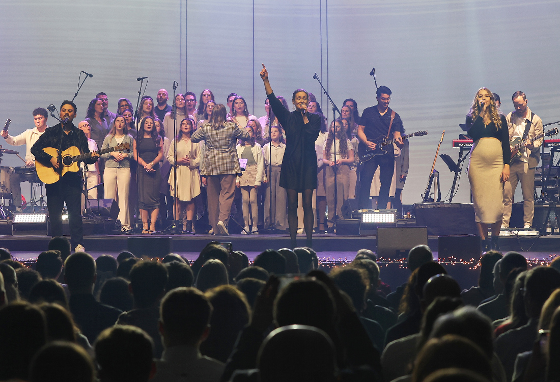 An Heiligabend wurde in der Gummersbacher SCHWALBE arena der Weihnachtsgottesdienst der „Kirche für Oberberg“ (KFO) mit einem beeindruckenden Opener eingeleitet, der die über 3.000 Besucher sofort in den Bann zog. Aus dem Stimmengewirr des Alltags wurden sie zu der zentralen Person des Abends hingeführt: Jesus, der vor mehr als 2.000 Jahren in die Welt gekommen ist.