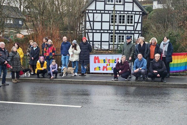 Fotos: Franziska Stangier, Nora Ernst --- In Holpe wurden bunte Banner aufgehängt.