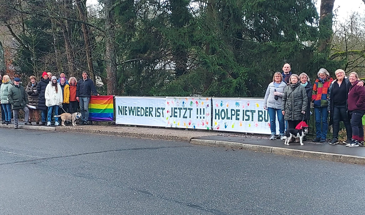 Ein klares Zeichen für Toleranz, den Zusammenhalt in der Gemeinschaft, Vielfalt und gegen Rechtsextremismus: das haben einige Menschen aus der Morsbacher Ortschaft Holpe gesetzt. Zusammen mit umliegenden Anwohnern haben sie am vergangenen Samstag Banner gestaltet, unter anderem mit der Aufschrift „Holpe ist bunt“. Am vergangenen Montag – und damit am Holocaust-Gedenktag – wurden die Banner in der Ortschaft aufgehängt. Das Aufhängen der Banner wurde von der Gemeinde Morsbach genehmigt.