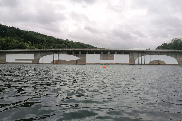 [Zurzeit ist das Kunstwerk an der Staumauer zu sehen. Abhängig ist das aber nicht zuletzt vom Wasserstand.]