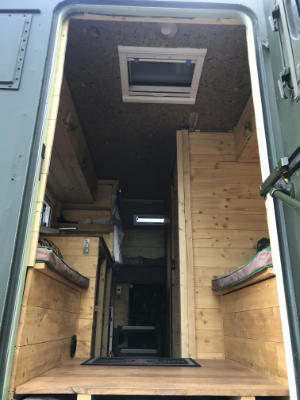 „Inmitten der Natur ist es schwierig, Ersatzteile zu besorgen“, so der 56-jährige Unternehmensberater. Beide zieht es nämlich in die Wildnis. Das Ehepaar ist sehr naturverbunden, dafür spricht auch der Innenausbau ihres „Expeditionsfahrzeugs“. Nach dem Zukauf eines 4,20 x 2,10 Meter großen sogenannten Funkkoffers der Bundeswehr stattete das Ehepaar das Innere mit Holz aus dem eigenen Waldbestand aus. Neben Trenntoilette und Dusche verfügt man und auch über Betten und sogar eine Küche.