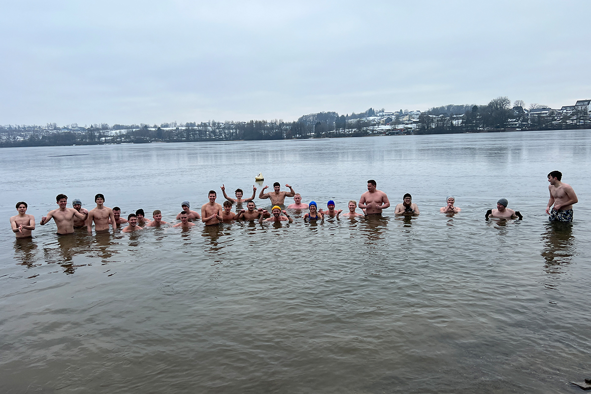 Eisbaden in der Brucher: 30 „Zitteraale“ wagten den Gang ins Wasser