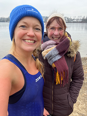 Die „Zitteraale Oberberg“ gehen auch in kleinen Gruppen oder alleine baden, um Ruhe zu finden, Grenzen zu spüren und dieses einzigartige Gefühl vom Eisbaden zu genießen. Der Sport sei kein Wettbewerb, wer es länger im kalten Nass aushalte, sondern eine Lebenseinstellung, bei der jeder auf die eigenen Signale des Körpers hören sollte, wann es Zeit ist, das Wasser zu verlassen, erklärt Horn (Foto), die bereits seit drei Jahren zum Eisbaden geht.