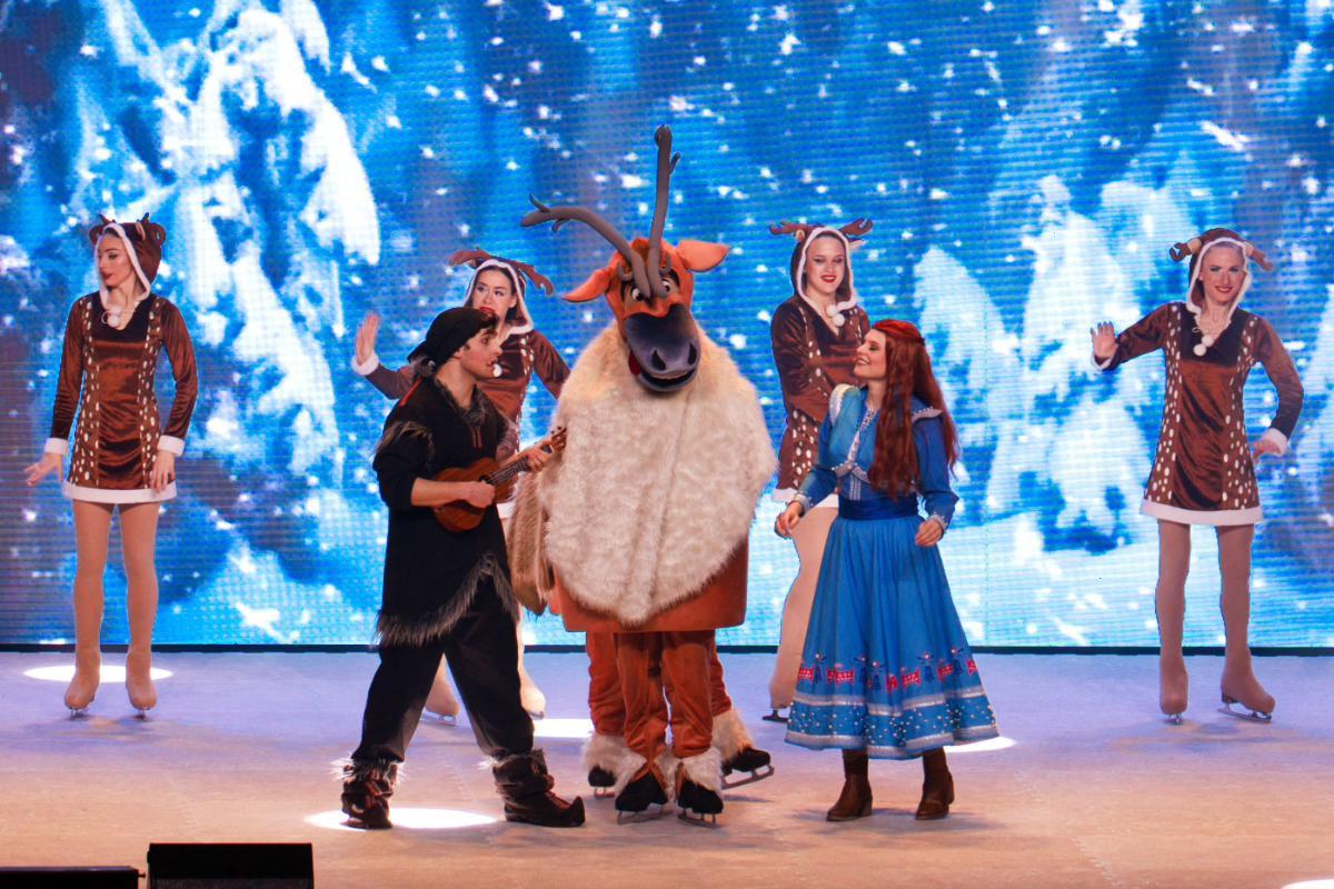 Große und kleine Fans der Disney-Animationsfilme „Eiskönigin 1 und 2“ kamen am Freitagabend in der SCHWALBE arena in Gummersbach auf ihre Kosten. Die Zuschauer erlebten ein buntes Abenteuer mit Elsa, Anna und ihren Freunden auf dem Eis. Dafür entstand auf der Bühne eine besonders „frostige“ Kulisse. Auf einer digitalen Leinwand wurden wechselnde Motive projiziert.