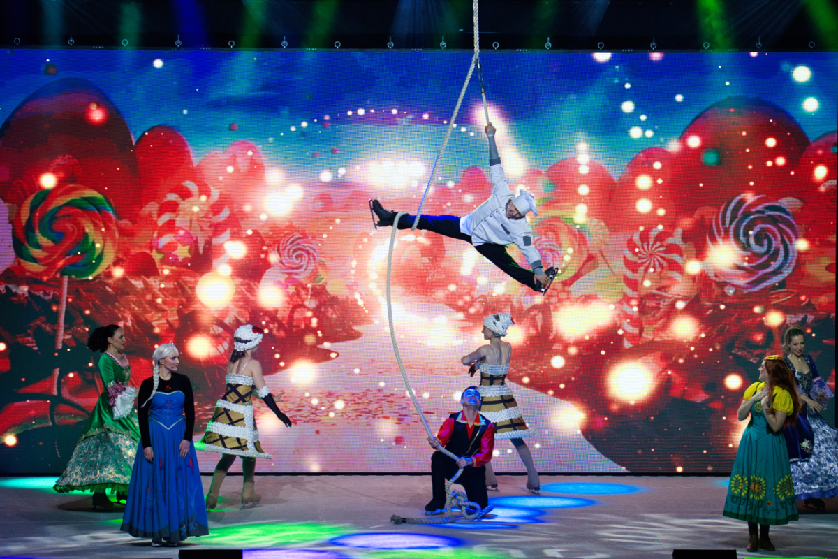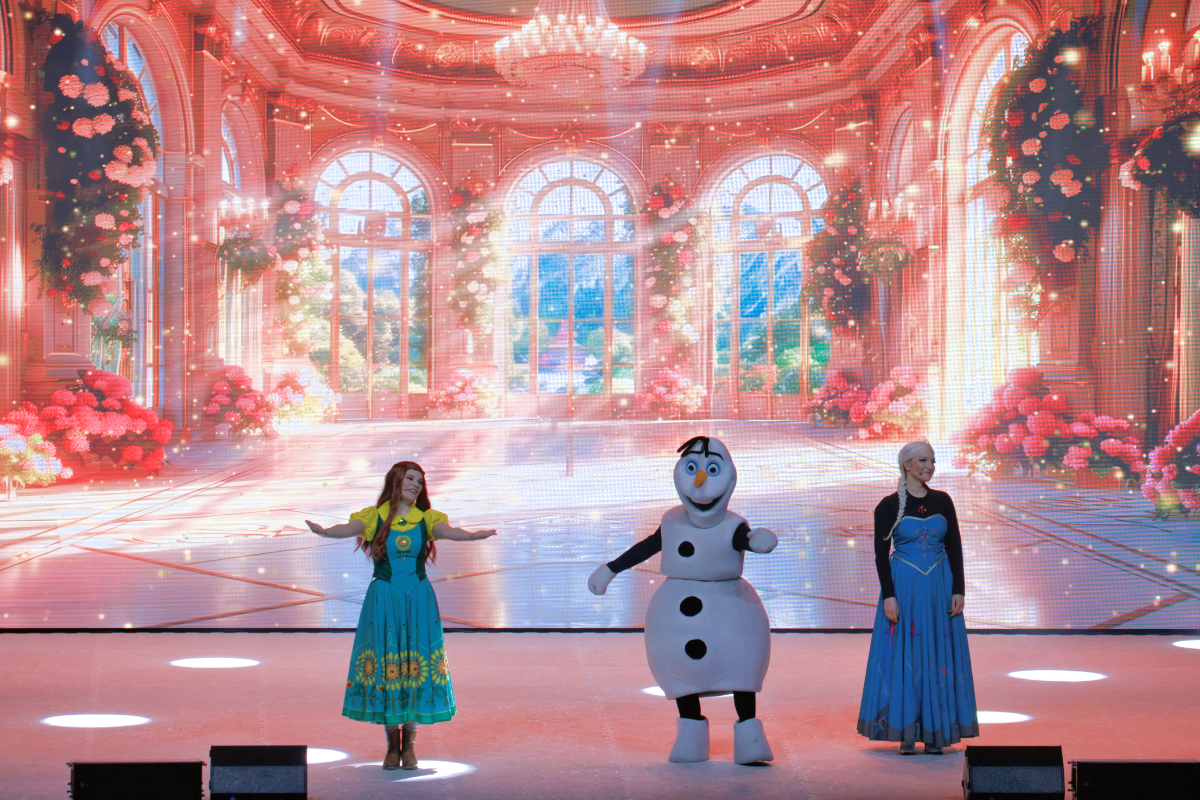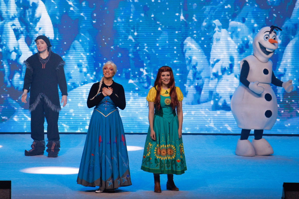 Auf dem LED-Screen waren unter anderem ein Märchenschloss, Landschaften, ein Ballsaal, Feuerwerk und ein winterliches Dorf zu sehen. Einige der kleinen Disney-Fans hatten sich als Prinzessin Elsa verkleidet. Für eine besondere Atmosphäre sorgten Leuchtstäbe und Blinklichter, welche die Besucher mitgebracht hatten. Die Eis-Show lebte von farbenfrohen Kostümen und wechselnden Szenenbildern. Die Musical-Solisten, Eistänzer und Akrobaten tanzten auf der Fläche, boten dem Publikum so manche artistische Leistung und schwebten wie Anna und Kristoff auf einem Leuchter über die Bühne. Sogar Schnee ließen die Veranstalter für die Musik-Show rieseln. Mädchenträume wurden wahr. Die Geschichte spielt im Königreich Arendelle und handelt von den Schwestern Elsa und Anna. Die Musik-Show auf Eis wurde in Anlehnung an die Filme umgesetzt, inklusive der live gesungenen Songs des Eiskönigin-Soundtracks. Das Show-Ensemble bezog auch das Publikum mit ein, wie etwa bei der „singenden Säge“ und erntete viel Applaus.