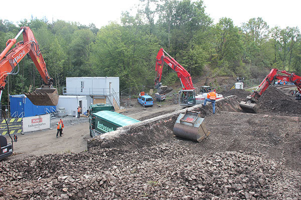 Auf der Baustelle merkt man, wie eingespielt die Abläufe sind. Ein Rädchen greift ins andere. Kaum ist ein Sattelschlepper ums Eck gebogen, kommt auch schon der nächste. Montags bis samstags werden die rund 20 Arbeiter von 7 bis 17 Uhr in Luttersiefen sein. Nachtschichten seien nicht eingeplant, so Bauleiter Maßing. „Ausschließen können wir diese aber nicht.“