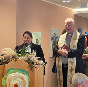 [Jenny Caiza Andresen und Christoph Bersch erteilten der Residenz feierlich den ökumenischen Segen.]