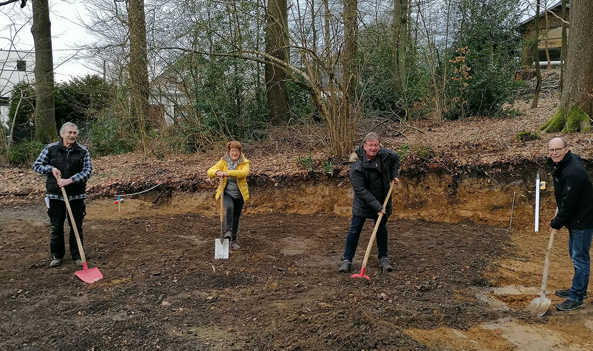 Bereits im August war NRW-Heimatministerin Ina Scharrenbach (CDU) in Erlinghagen zu Gast, um feierlich einen Förderbescheid über 47.000 Euro an die Dorfgemeinschaft zu überreichen. Das Projekt: Die in die Jahre gekommene Holzhütte im Eichenhof, dem Dreh- und Angelpunkt des Orts, mit einem Neubau ersetzen. Der Abriss erfolgte schon im September. Viele Anträge und Behördengänge später hat die rührige Dorfgemeinschaft den nächsten Schritt machen dürfen. Der Bagger rückte in der vergangenen Woche an, erledigte Erdarbeiten und der erste Spatenstich stand an. Aufgrund der Pandemie wurde dabei auf eine öffentliche Veranstaltung verzichtet.