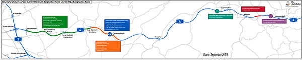- Von Montag, 9. Oktober, bis Samstag, 20. Oktober, sind auf der A4 die Auffahrten der Anschlussstelle Bensberg gesperrt.