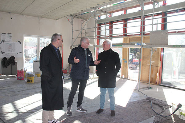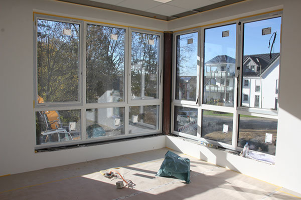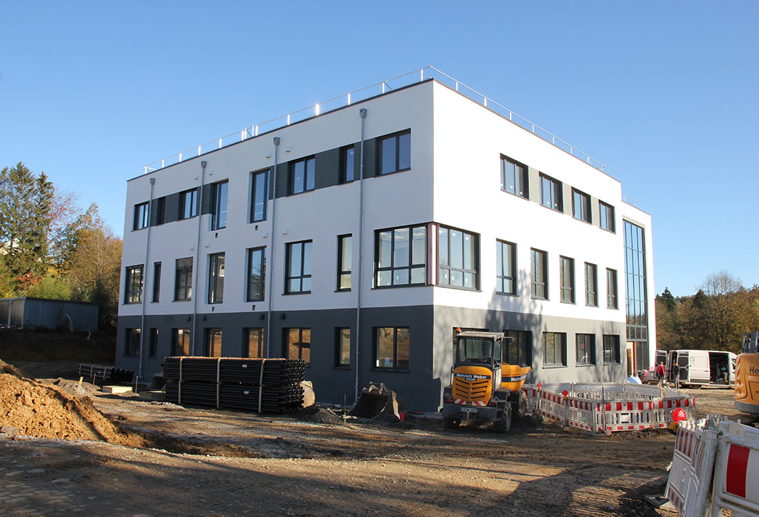 Nun gehen die Bauarbeiten im Gebäude und im Außenbereich in die finale Phase. Drinnen ist an vielen Stellen der Boden bereits verlegt, die Wände sind weiß, der Aufzug kommt diese Woche rein, die Inneneinrichtung folgt. Und auch draußen sollen die wichtigen Arbeiten alle bis zum Jahreswechsel erledigt sein – unter anderem werden 44 Parkplätze dort eingerichtet.