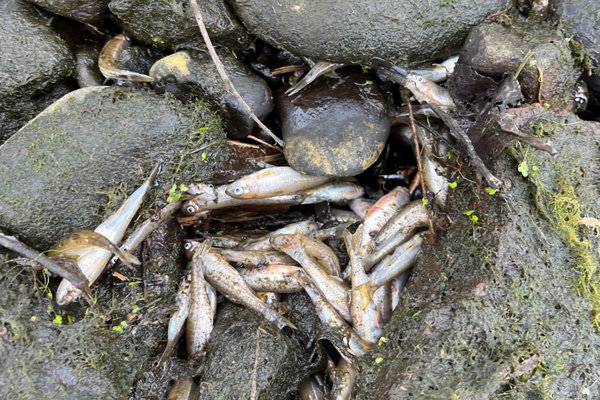 Zur Verwunderung Kleins hätten sich die drei Polizisten vor Ort aber geweigert, eine Strafanzeige aufzunehmen, da zunächst wegen fehlender Rechtsgrundlage geprüft werden müsse, ob überhaupt eine Straftat vorliege. Später hatte Klein beim Gesundheitsamt sich nach den Arbeitsergebnissen des Kreismitarbeiters erkundigt und war schockiert. „Er hat einen Bereich von etwa 30 Quadratmetern untersucht und dort etwa 60 verendete Fische gezählt“, sagt der Angler. Aus seiner Sicht aber handele es sich bei dem betroffenen Bereich um eine zehnfach größere Fläche. Zudem habe der Mitarbeiter nur die Tiere an der Oberfläche und nicht die Arten unter den Steinen gezählt. Klein spricht von mindestens 1.000, die aufgrund des schnell sinkenden Pegelstandes der Agger „keine Chance mehr hatten“ und binnen weniger Minuten erstickt seien.