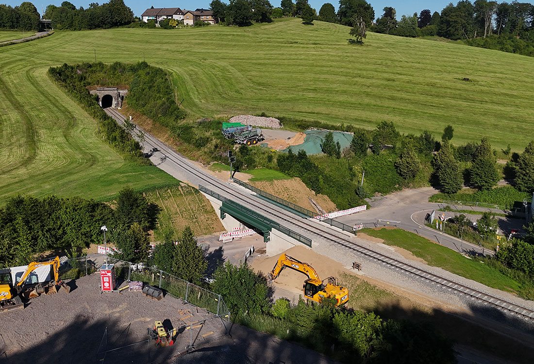 Weitere Herausforderungen hat es der Deutschen Bahn zufolge durch Grund- und Oberflächenwasser gegeben. So sei das Arbeiten in der Baugrube kontinuierlich durch große Wassermengen beeinträchtigt gewesen. Beim Durchstich musste außerdem der naheliegende Durchlass betrachtet werden. „Dieser war nicht in den vorhandenen Bestandsplänen verzeichnet und musste im Rahmen des Projektes geplant und erneuert werden“, erklärte die DB in einer Mitteilung.