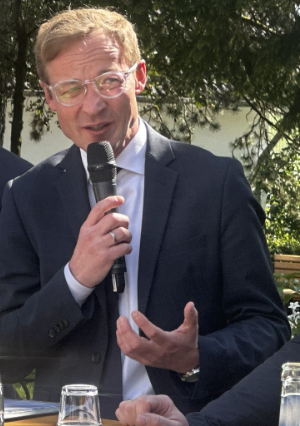 „Es gibt ab sofort die Möglichkeit, dass Hochzeitsgäste nach der Feier hier übernachten“, erklärte der Vereinsvize Ulrich Cölln bei der Führung durch das Haus. Der Heimatvereinsvorsitzende Dr. Ingo Bernard hatte auf dem Gelände zahlreiche Ehrengäste zur Eröffnungsfeier willkommen geheißen. Darunter Daniel Sieveke, Staatssekretär im NRW-Heimatministerium (Foto), Kreisdirektor Klaus Grootens, Lindlars Bürgermeister Dr. Georg Ludwig und Bundestagsabgeordneten Dr. Carsten Brodesser. Bernhard freute sich über die gute Zusammenarbeit von Projektleiter Bernd Althaus (Heimatverein) und den Architekten Frank Reuter sowie Michael Rietz. Die Moderation während der Projektvorstellung hatte Kreisplanungsdezernent und Vorsitzender des Trägervereins der LEADER-Region Oberberg, Frank Herhaus, übernommen.