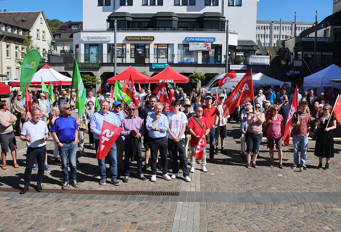 Gummersbach - Kundgebung des Deutschen Gewerkschaftsbunds auf dem Bismarckplatz - Hunderte Teilnehmer.