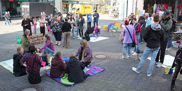 Bis 12 Uhr wurde sich am Lindenplatz ausgetauscht. Anschließend ging es für viele Teilnehmerinnen per Zug weiter nach Köln zur Veranstaltung des Töchterkollektivs.