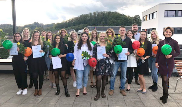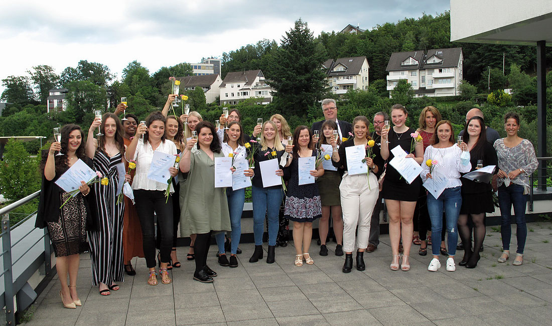 Gummersbach – Auszubildende und erstmalig Studierende freuen sich über ihren beruflichen Abschluss am Gesundheits- und Bildungszentrum Oberberg.