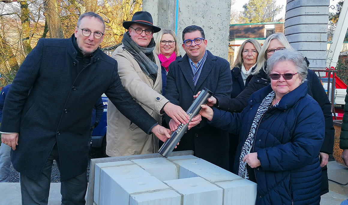 Für den Gummersbacher Bürgermeister stand heute eine Premiere auf dem Programm. Seit nunmehr 18 Jahren ist Frank Helmenstein im Amt, durfte in dieser Zeit bereits die ein oder andere Kita einweihen. Doch eine Grundsteinlegung für eine Kindertagesstätte stand heute erstmals im Terminkalender des Rathauschefs. Geführt hat ihn der heutige Termin nach Hülsenbusch. Dort entsteht neben der bestehenden Käthe-Frankenthal-Kindertagesstätte der Arbeiterwohlfahrt (AWO) ein neues Gebäude: größer, moderner und energieeffizienter.