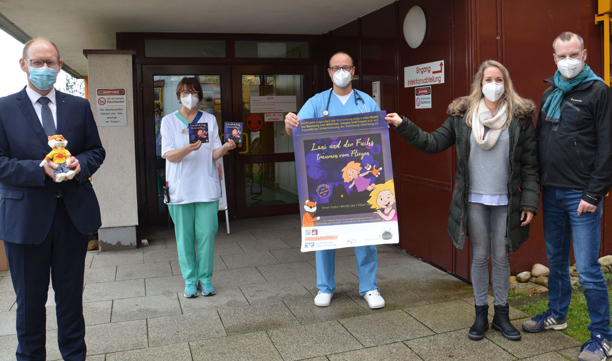 Gummersbach – Die Autoren von „Lani und der Fuchs träumen vom Fliegen“ spenden mit der Volksbank Oberberg 50 Bücher an Patienten der Kinderklinik.