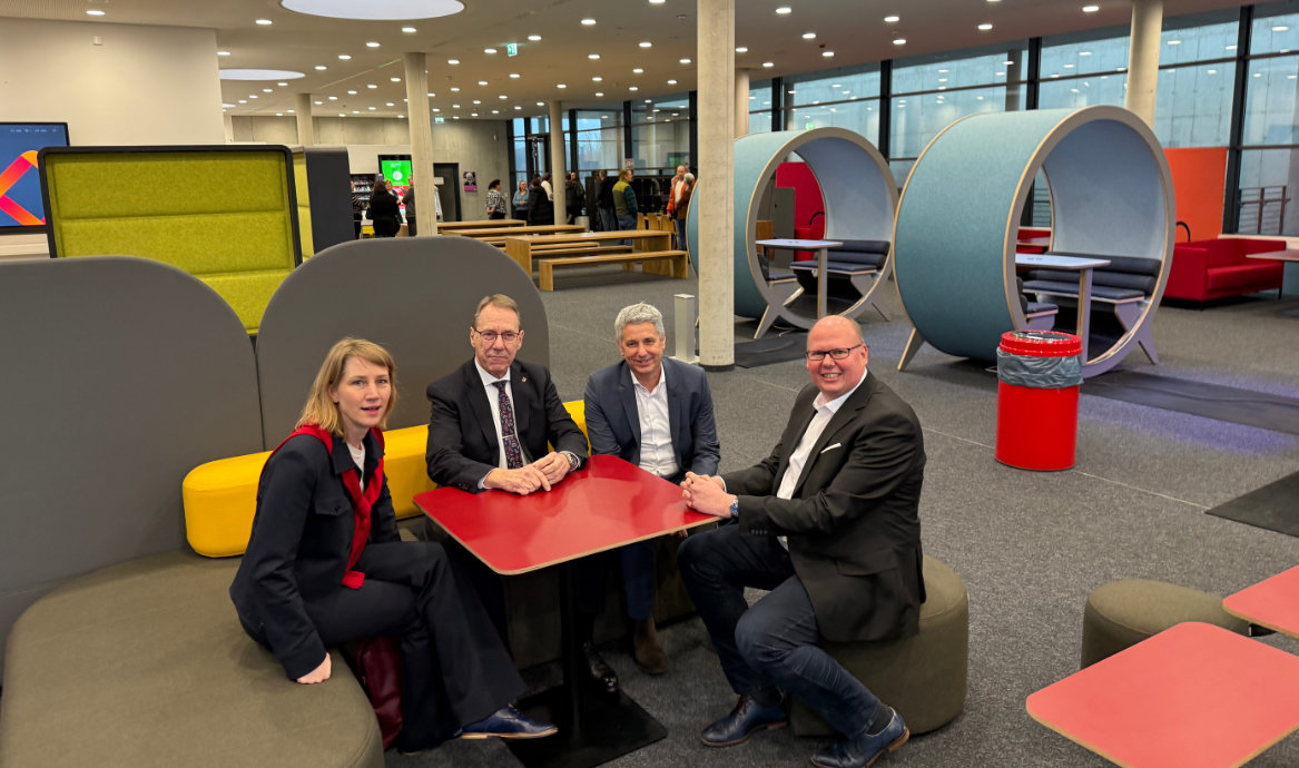 Heute wurde an der TH Köln/Campus Gummersbach die Hans Hermann Voss-Lernarena offiziell eingeweiht. Die Einrichtung ist bereits seit dem vergangenen Frühjahr für Studenten zugänglich, heute nun wurde sie mit zahlreichen Gästen aus Wirtschaft, Politik und Technischer Hochschule eingeweiht. Sie ist eine große, zusammenhängende und offen zugängliche Fläche, die verschiedene, ineinander übergehende Räume miteinander kombiniert. Landrat Jochen Hagt erklärte anlässlich der heutigen Eröffnung: „In der industriegeprägten Region ist eine solche Einrichtung in ordentlicher Lernatmosphäre wichtig“. Er freue sich auf eine weiterhin enge Zusammenarbeit zwischen Kreis und Campus Gummersbach.