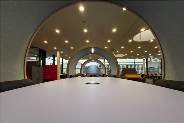 „Das ist das Resultat von über 70 Hochschulbesuchen in Deutschland und Europa“, sagte der Gummersbacher Dekan und Mitgestalter, Prof. Dr. Christian Kohls, und erläuterte die aus seiner Sicht innovativ gestaltete Lernumgebung. Für unterschiedliche große Lerngruppen – von Einzelpersonen über kleine Teams mit vier bis Personen oder größere Gruppen – bietet sie farblich unterschiedlich gestaltete Bereiche. Je nach Bedarf können diese zwar akustisch und vor unerwünschten Blicken geschützt, aber nicht abgetrennt werden.