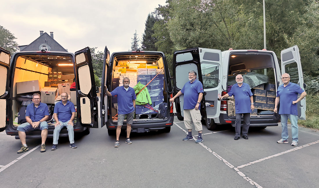 Delegationsleiter Christian Stiefelhagen, Chef der Flüchtlingshilfe Engelskirchen und Bürgerbusfahrer, erwiderte, dass es für ihn und die Mitglieder der beiden Vereine eine Verpflichtung sei, in solchen Zeiten zu helfen. Zugleich bedankte er sich bei den Bürgern und den Geschäftsleuten aus Engelskirchen für die großzügigen Spenden.
