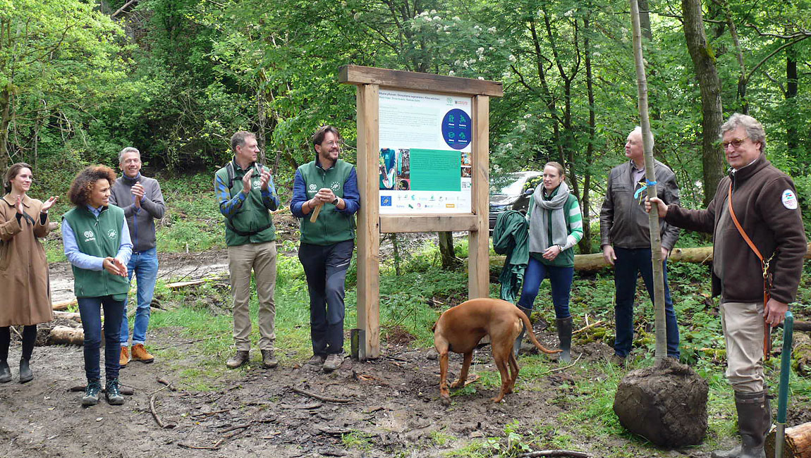 "Wir unterstützen die Idee, hier vor Ort Bäume zu pflanzen, die im Klima von ‚morgen‘ entstanden sind und sich den zu erwartenden Klimaveränderungen in Deutschland potentiell besser anpassen", unterstrich Jörg Deselaers als Kurator des Stifts Ehreshoven. Als promovierter Biologe begrüßte Engelskirchens Bürgermeister Dr. Gero Karthaus das Pilotprojekt, das innerhalb der Aggeraue an einem rege frequentierten Wanderweg liegt. "Ich drücke dem ersten EU-Wald in Engelskirchen die Daumen."