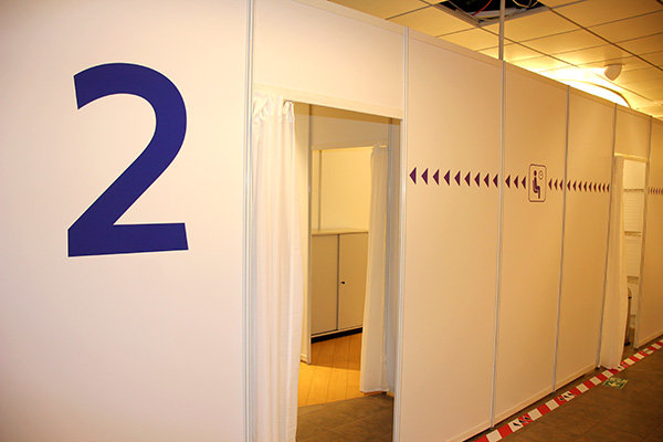Weiter geht es in die Impfkabine, in denen sich Ärzte und das medizinische Fachpersonal um die Menschen kümmern. Im Normalfall muss jeder Impfling alleine zum Termin kommen, Ausnahmen müssen im Vorfeld abgesprochen werden.
