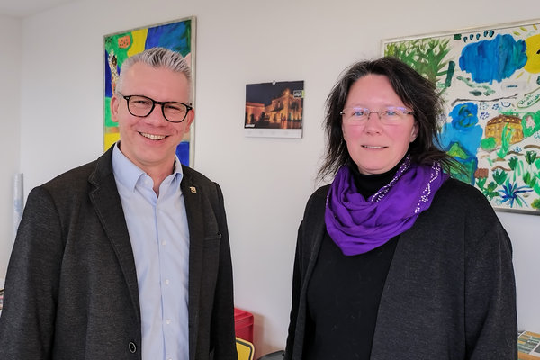 [Bürgermeister Sven Engelmann zusammen mit Nicole Mirgeler, Leiterin der Stabsstelle Gemeindeentwicklung.]