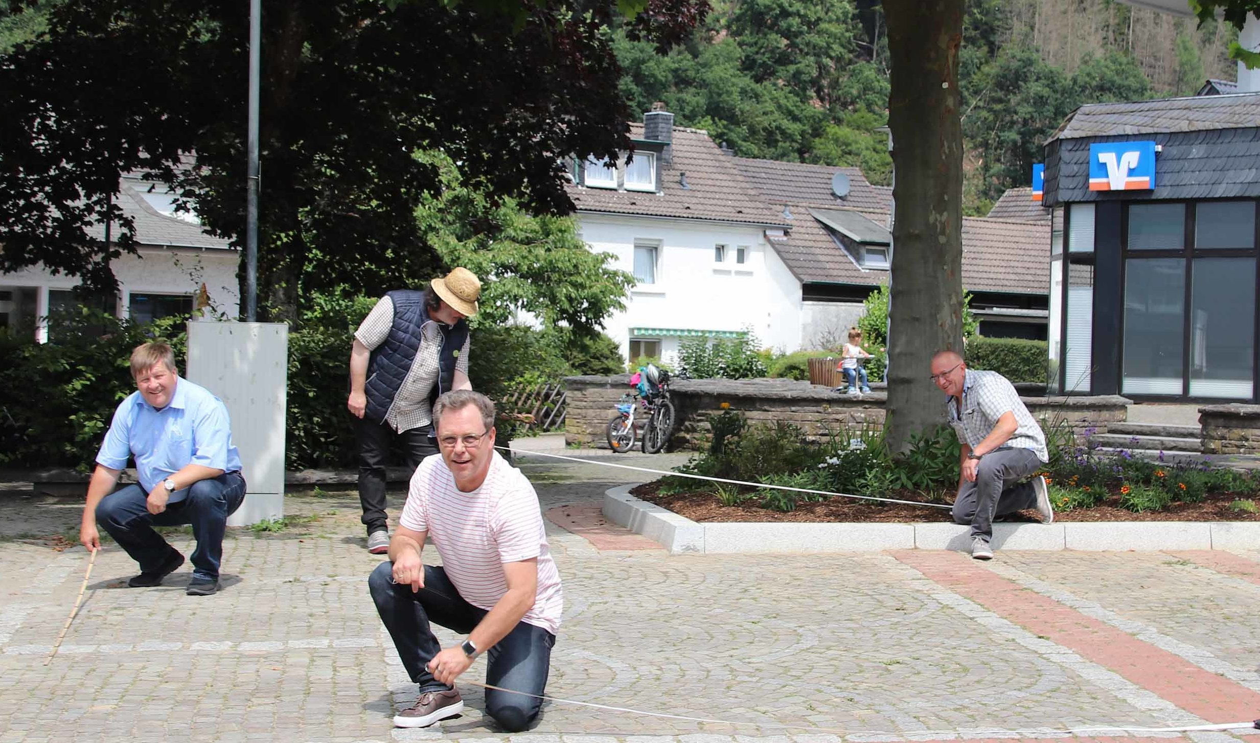 Engelskirchen – Mitglieder der KG Närrische Oberberger haben den Edmund-Schiefeling-Platz vermessen und planen für die kommende Session.