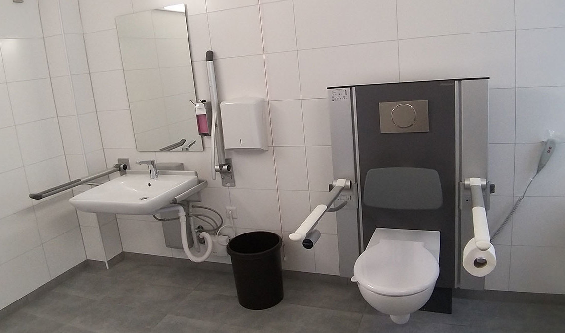 Ab sofort steht im Rathaus eine barrierefreie öffentliche Toilette zur Verfügung. Die neue Anlage ist im Untergeschoss des Gebäudes eingebaut worden und von der Marktstraße aus erreichbar, wie die Stadtverwaltung mitteilt. Sie ist auch mit einem Rollstuhl befahrbar. Zusätzlich wurden ein höhenverstellbarer Waschtisch und eine höhenverstellbare Pflege-Liege eingerichtet. In Planung sei zudem ein WC-Lift mit Rückenlehne.