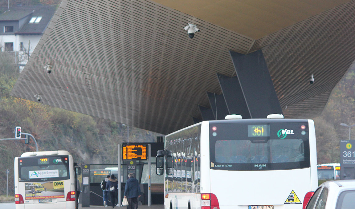 Aufmerksamen Nutzern des öffentlichen Nahverkehrs könnten sie bereits aufgefallen sein: Die Kameras, die in luftiger Höhe am Busbahnhof in Gummersbach angebracht worden sind. Seit Montag befinden sie sich im „Echtbetrieb“, wie Bürgermeister Frank Helmenstein im Rahmen einer digitalen Pressekonferenz sagte, sie zeichnen nun also Bilder auf. Ein Jahr lang hat die Stadtverwaltung diesen Schritt vorbereitet. Die wichtigsten Fragen im Überblick: