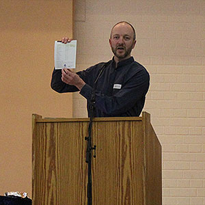 Thomas Terberger, Kirchmeister in der Kirchengemeinde Marienberghausen, berichtete von der Entwicklung im Rahmen des Managementsystems Grüner Hahn. Gerade durch den Neubau des Gemeindehauses nach modernen energetischen Richtlinien – eine Geothermieanlage versorgt das neue Gebäude und die Pfarrscheune – habe es enorme Einsparungen gegeben. Aber auch kleinere Dinge führten zu positiven Ergebnissen: das Umrüsten alter Glühbirnen, moderne Heizungssteuerungsanlagen, das Beziehen von Ökostrom oder auch das Insektenhotel und die Bienenstöcke der Gemeinde.